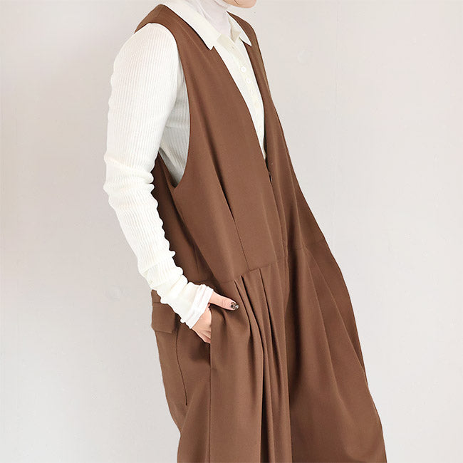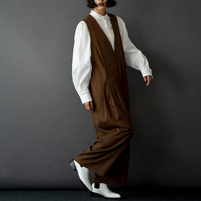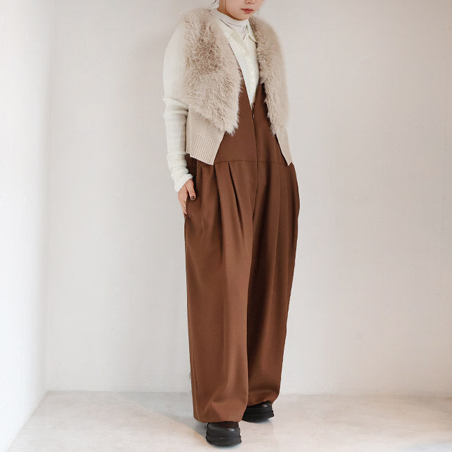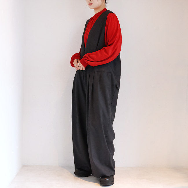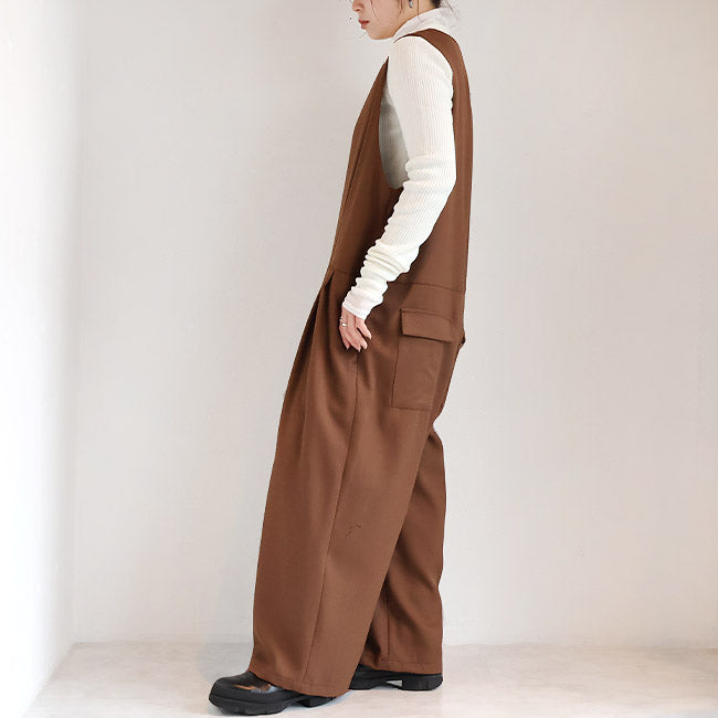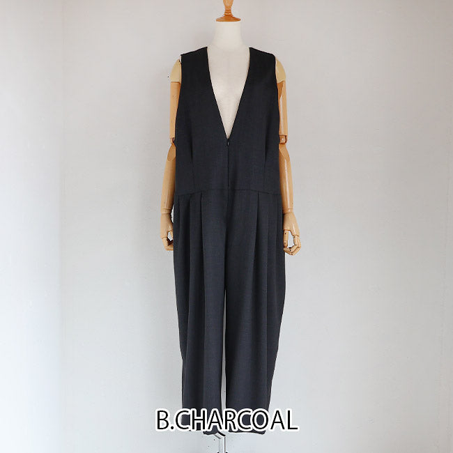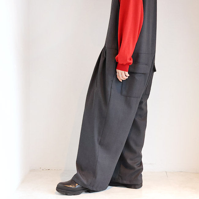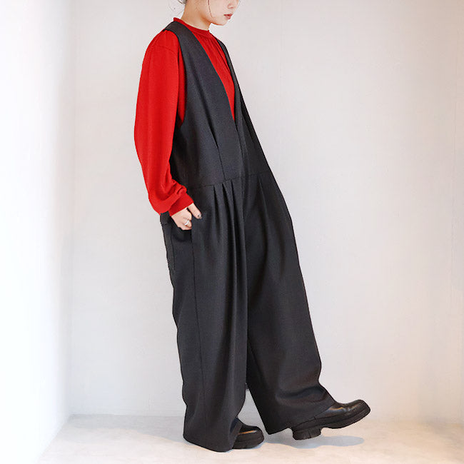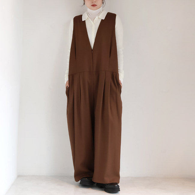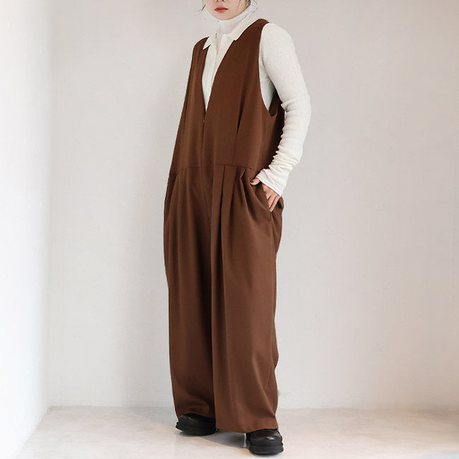 人気の「MANON(マノン)」より、ゆったりたっぷりぷかっと着るのが可愛いスリータックワイドサロペットが入荷しました。フロントは深めのVネックにファスナー開きで着脱もスムーズ。中に合わせるインナーによって色々と雰囲気を変えて楽しめる、大人向けサロペットパンツです。素材は上質なオーストラリアのバージンウール×ポリエステルブレンドウォッシャブル対応可なのも嬉しいポイント♪身幅もたっぷりとったスリータックのワイドシルエット、股上も深くどこも締めつけ感がなく、ストレスフリーな着心地の良さも魅力です。ポケット両サイドとバックポケットあり。着用モデル 身長155cm