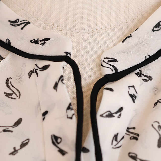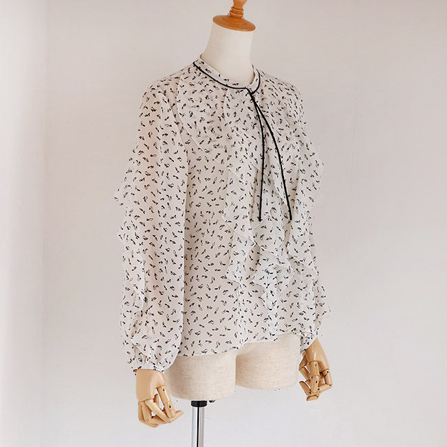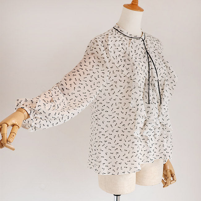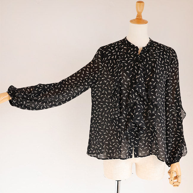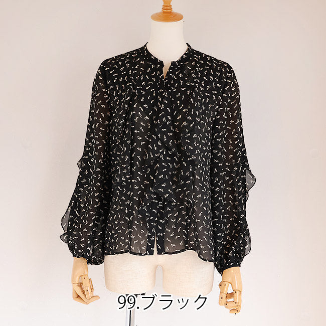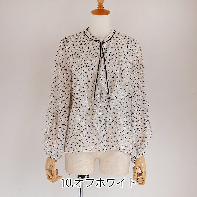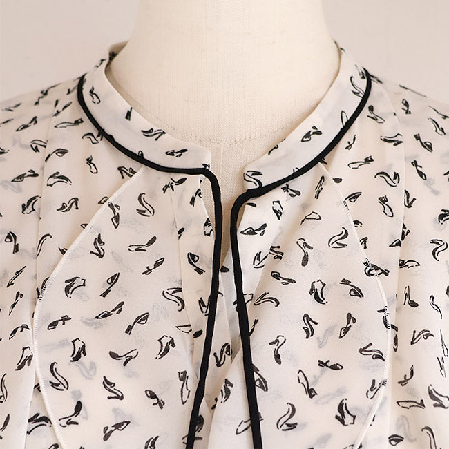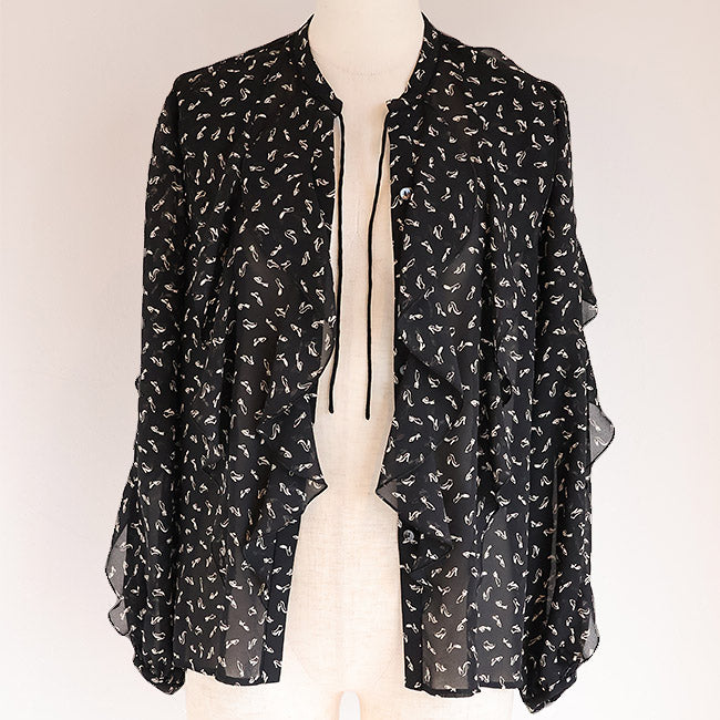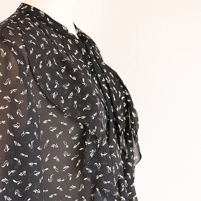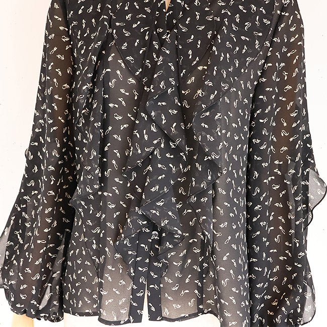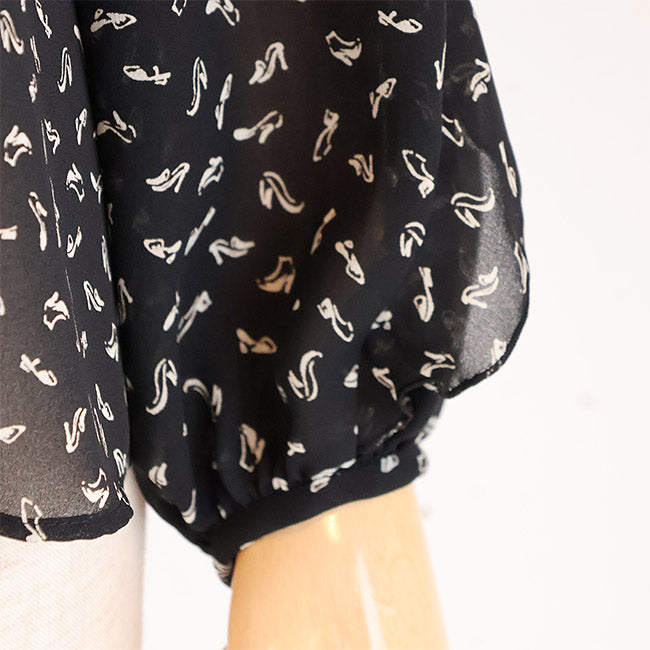 PASSIONE(パシオーネ) フリルブラウス ハイヒールプリント柄  616904